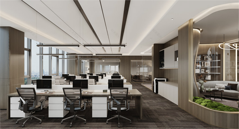 現(xiàn)代商務(wù)公司的辦公室采用輕奢風(fēng)格設(shè)計(jì)理念,追求的是精致與品位的平衡。設(shè)計(jì)中融入了簡約的線條和高級的材料,如大理石、金屬和玻璃,來營造一種低調(diào)的奢華感??臻g布局注重功能性與舒適性的結(jié)合,確保工作效率的同時(shí),也不失為員工提供一個(gè)放松的環(huán)境。色彩上傾向于使用中性色調(diào),搭配一些亮色點(diǎn)綴,既保持了商務(wù)的嚴(yán)謹(jǐn)性,又增添了活力。整體設(shè)計(jì)旨在通過細(xì)節(jié)的精致處理,展現(xiàn)出企業(yè)的形象和對品質(zhì)的追求。