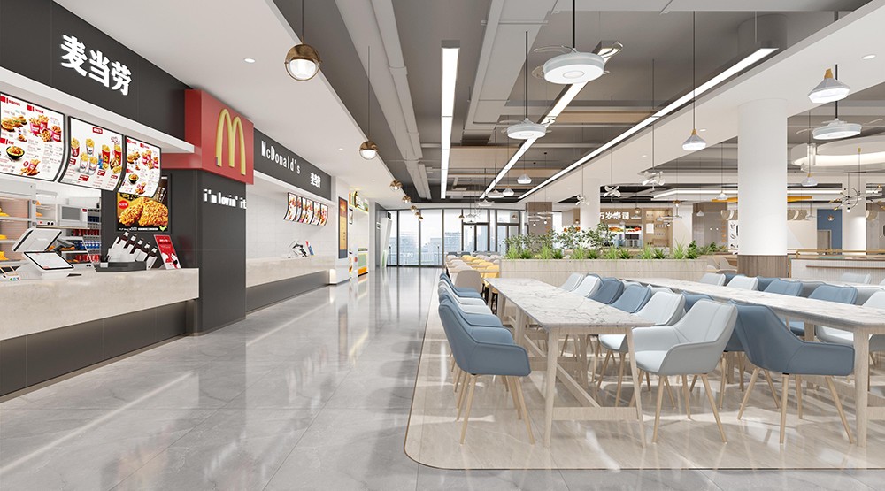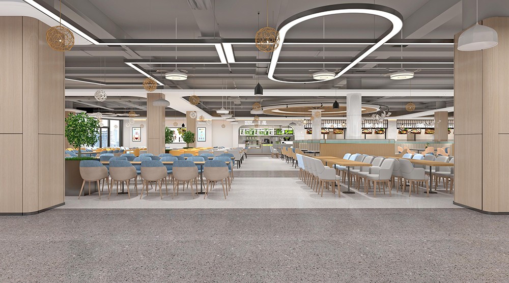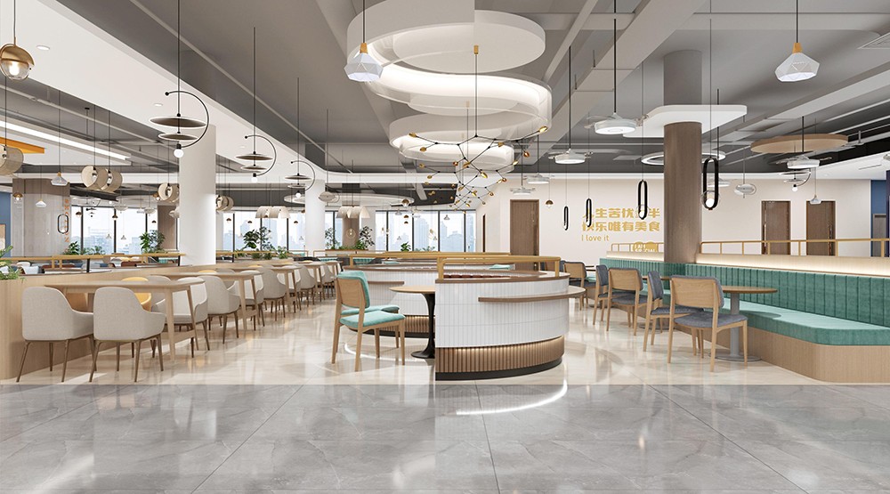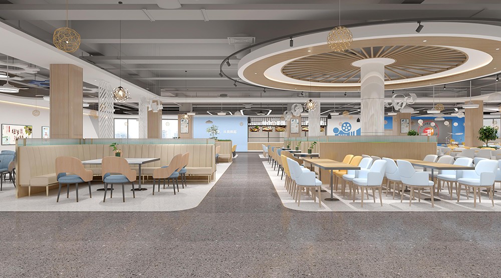 設(shè)計理念:新鮮出爐的餐飲空間來了,突破傳統(tǒng)食堂形式,創(chuàng)造出開放、通透的餐飲環(huán)境,滿足師生們的不同需求。買餐、分流、人流動線清晰,在保證大流量快速用餐的同時塑造小空間氛圍,提供休閑,交流的空間,整體空間干凈利落,簡潔明快?,F(xiàn)代化設(shè)計充分體現(xiàn)空間尺度,優(yōu)化食堂環(huán)境品質(zhì),營造健康、安全、舒適的就餐環(huán)境。這樣的食堂環(huán)境,是師生向往的,外人羨慕的。