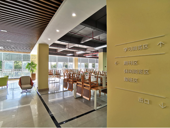 此次項目是廣東科技學(xué)院南城校區(qū)圖書館閱覽室裝修工程。整個圖書館閱讀空間主色調(diào)定為白色、木色、淡綠色,還原清新自然的氛圍,喚醒青春歲月與校園生活氣息。