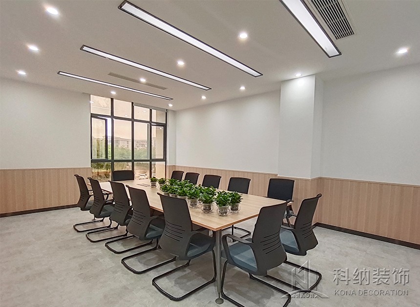 設(shè)計理念:該案例是嶺南學(xué)院清遠(yuǎn)校區(qū)行政辦公樓設(shè)計裝修項目,為了使行政樓更好地作為服務(wù)和辦公場所,設(shè)計師根據(jù)使用需求將一層設(shè)計為多功能綜合服務(wù)大廳;二層為校企合作基地,對外辦公;三層作為行政職能辦公室;四層為校領(lǐng)導(dǎo)、核心職能部門辦公室,對內(nèi)辦公;五層作為會議室和檔案室,用于內(nèi)部使用。這樣的規(guī)劃設(shè)計合理,各區(qū)域既聯(lián)系又互不影響,很好地將校內(nèi)外人員分流,最大程度地利用全部空間。天花圓形造型與線條組合,構(gòu)造出“宇宙星空軌跡”,飛機(jī)造型吊燈寓意學(xué)生以嶺南學(xué)院為起點(diǎn),學(xué)有所成,飛向?qū)儆谒麄兏髯缘念I(lǐng)域。墻面以護(hù)墻板裝飾,既起到保護(hù)墻體的作用,又與整體風(fēng)格相呼應(yīng)。