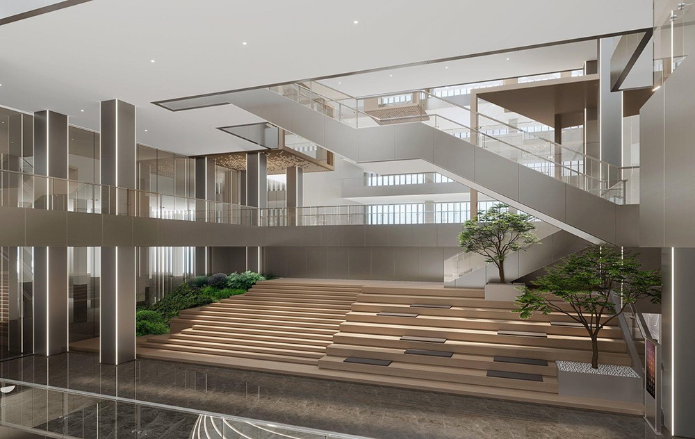 項(xiàng)目作為大型公共服務(wù)職能空間,需要顯示出“陽(yáng)光”和“開(kāi)放”的城市公共性空間必要精神氣質(zhì)和象征。同時(shí),結(jié)合室內(nèi)景觀的等候區(qū)域增加綠植的承托,在陽(yáng)光與室外綠地的交融中消除了建筑內(nèi)外的差異,營(yíng)造空間中人與自然的親密和諧氛圍。光線本身并沒(méi)有太抽象的意義,需要通過(guò)介質(zhì)疏理、約束,讓其成為空間必要的元素。