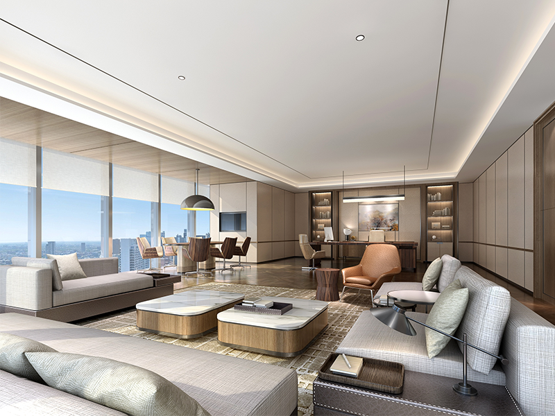 本方案的設(shè)計強(qiáng)調(diào)傳統(tǒng)文化與現(xiàn)代審美的結(jié)合,既保留中式的典雅與韻味,又融入現(xiàn)代設(shè)計的簡約與時尚,通過巧妙的布局和隔斷,使用中式屏風(fēng)、工藝隔斷、簡約博古架等,增強(qiáng)空間的層次感和流動性,使空間更加靈動通透。且多種形式的接待空間,滿足不同形式的商務(wù)接待場景。