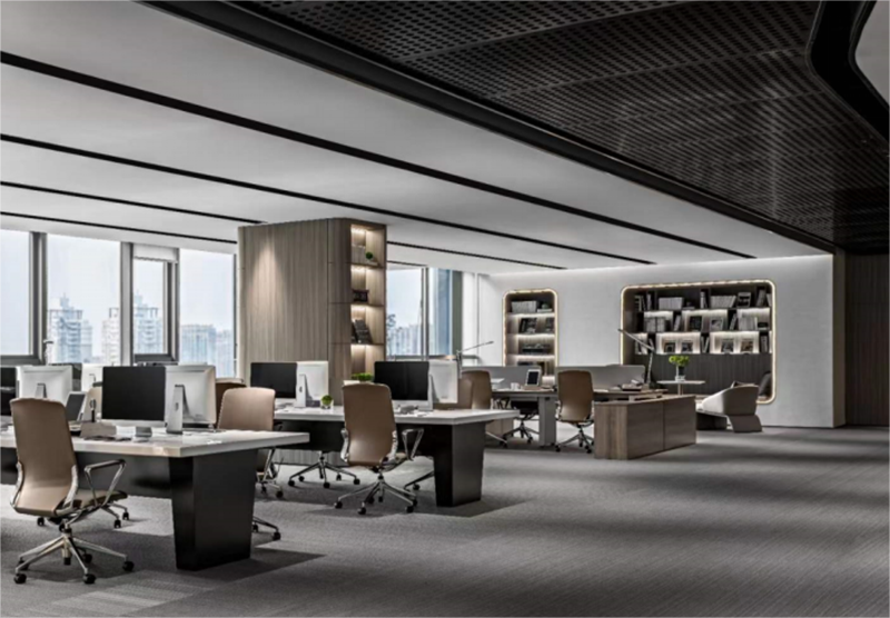 明亮大氣的現(xiàn)代風(fēng)設(shè)計(jì),營造出簡潔明亮、充滿靈感的工作環(huán)境。純凈的白色墻面加入藝術(shù)的造型手法與精選的現(xiàn)代家具相得益彰,展現(xiàn)出品牌的清新與活力。空間布局開放而靈活,鼓勵創(chuàng)意與交流,同時(shí)通過巧妙的照明設(shè)計(jì)和藝術(shù)裝飾,增添一抹溫馨與舒適。這樣的設(shè)計(jì)理念不僅反映了紡織品的多樣性和柔軟性,也為員工提供了一個(gè)激發(fā)創(chuàng)造力和享受工作的理想場所。