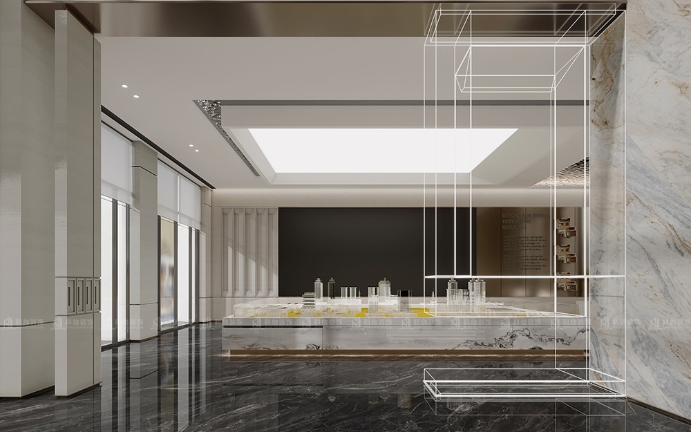 設計理念:融合地域文化元素,打造流水與江面光影藝術氛圍。圍繞用戶需求與地產企業(yè)目標,從功能、體驗、美學、技術四大維度構建設計邏輯,打造兼具實用性與藝術性的沉浸式營銷空間。