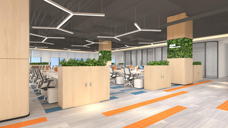 辦公室的前臺以原木色調(diào)為主,更貼近工業(yè)風(fēng)的自然空間的整體裝飾當(dāng)中傳達一種北歐風(fēng)情,流線型的線條燈線條使整個空間顯得生動有趣,書信的顏色,簡單的搭配,營造輕松愉快的氣氛,反映出企業(yè)的文化理念,同時也傳達了企業(yè)對員工的人文情懷。