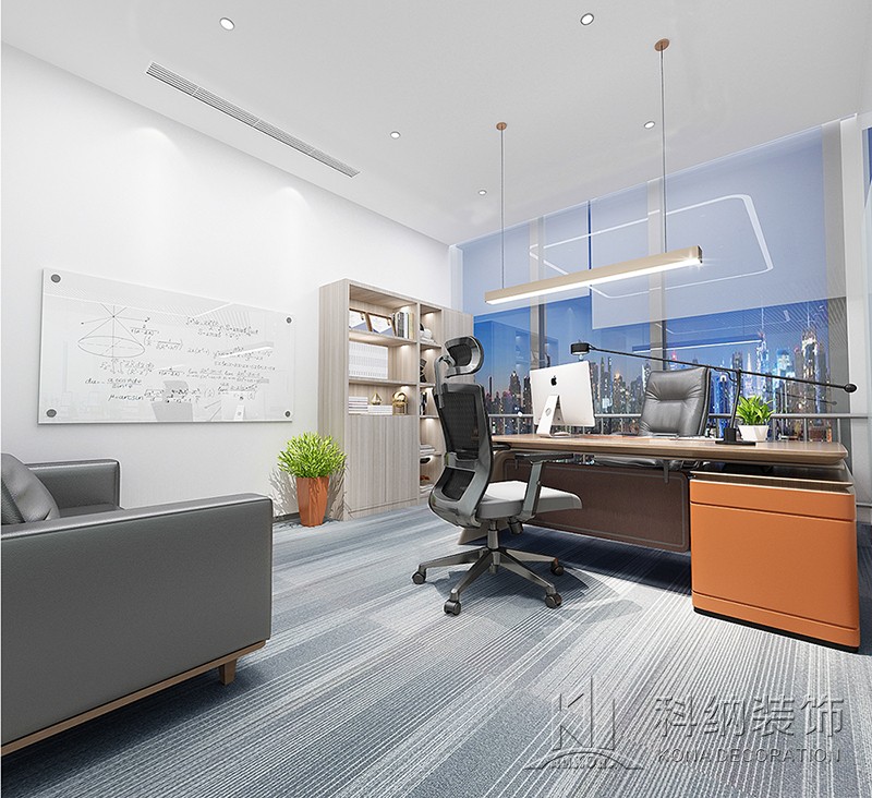 經(jīng)理辦公室整體的空間營造上以時尚簡約為主,在輕松釋然的柔和氛圍中,為使用者創(chuàng)建一個舒適的空間。