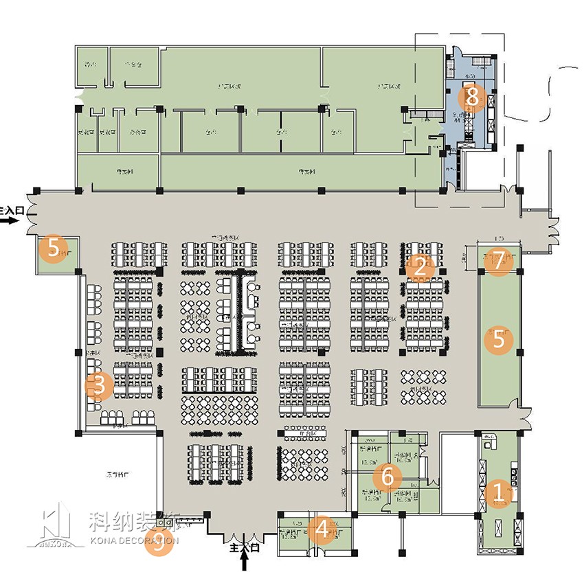 設(shè)計理念:設(shè)計師圍繞著“開放、包容、創(chuàng)新”的設(shè)計思路展開,整體風(fēng)格簡約穩(wěn)重、優(yōu)雅大方、東西方文化在這里相互交集融合、共生。整體格局設(shè)計沿用東方的古典美學(xué),用現(xiàn)代的裝飾語言營造出一個開放,包容的精神空間。設(shè)計師對于細節(jié)的考究更是細致入微,強調(diào)東方韻味與空間的感受,線條的運用更是畫龍點睛,形式上的變化細膩自然,材料上木材與石材的相互襯托,以及空間巧妙的留白,引人入勝。整體以暖色調(diào)為主色的餐飲空間,打造“多樣化”空間。