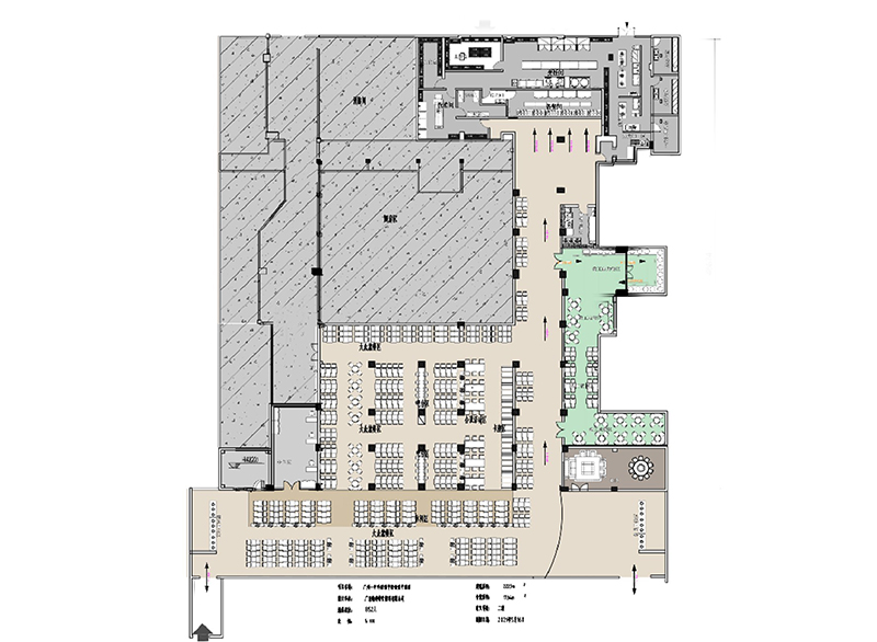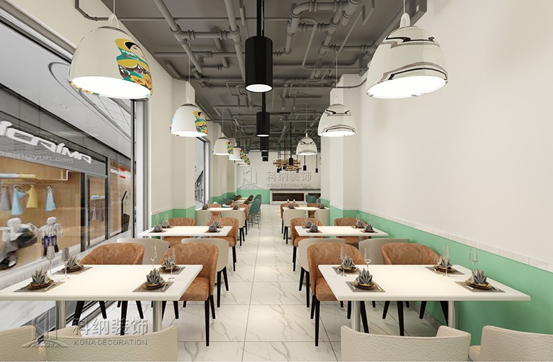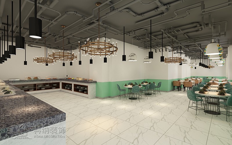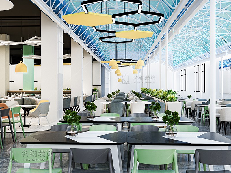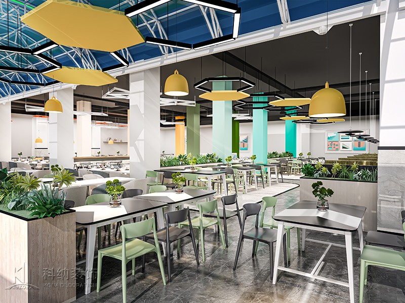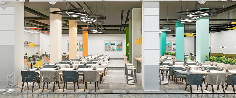 設(shè)計(jì)理念:大眾就餐區(qū)橫向舒展的開放式桌椅布局給予一層空間通透且自由的氛圍,由此顯露出交互的趣味性與工作的靈活性。 大眾就餐區(qū)的設(shè)計(jì)以暖色調(diào)為主,以漸變式的柱子做點(diǎn)綴,為空間增加活躍氣息。 休閑區(qū)的設(shè)計(jì)采用明亮地磚做區(qū)分,然后在設(shè)計(jì)中采用綠色營造舒適的氛圍,柔和燈光以及色彩搭配有利于緩解身心疲勞。烹飪區(qū)集中了餐品生產(chǎn)制作的主要工作,裝修應(yīng)符合單位的形象,簡單大氣為主,光線亮麗。 加工區(qū)的主要工作內(nèi)容有:對(duì)食品進(jìn)行分揀,清洗,浸泡,蔬菜類要按一揀、二洗、三切、四浸泡的順序操作等等。