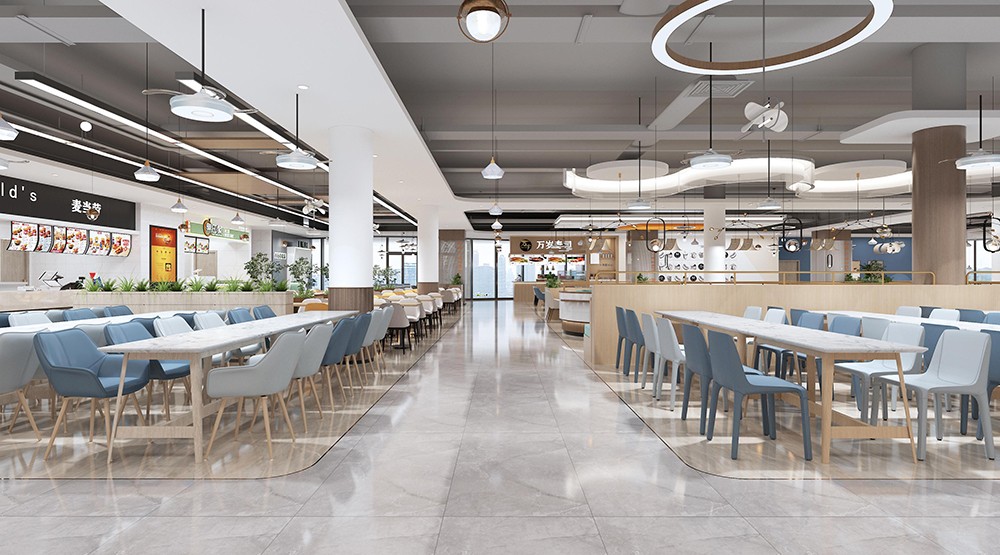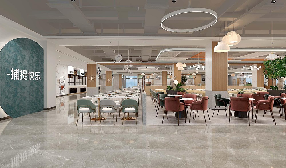 設(shè)計理念:新鮮出爐的餐飲空間來了,突破傳統(tǒng)食堂形式,創(chuàng)造出開放、通透的餐飲環(huán)境,滿足師生們的不同需求。買餐、分流、人流動線清晰,在保證大流量快速用餐的同時塑造小空間氛圍,提供休閑,交流的空間,整體空間干凈利落,簡潔明快?,F(xiàn)代化設(shè)計充分體現(xiàn)空間尺度,優(yōu)化食堂環(huán)境品質(zhì),營造健康、安全、舒適的就餐環(huán)境。這樣的食堂環(huán)境,是師生向往的,外人羨慕的。