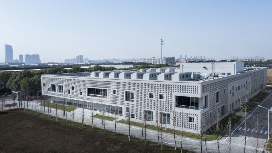 設計理念:本項目位于江蘇省昆山市,是和椿科技(昆山)有限公司投資于昆山花橋的二期廠房建設項目,根據(jù)和椿產(chǎn)品引入自然光與風、和遮陽的特性,采用當?shù)刈罱?jīng)濟的材料——混凝土空心磚,借鑒磚墻砌筑的傳統(tǒng)工藝,并根據(jù)內(nèi)部各空間不同的采光通風需求,將空心磚進行組織排列形成凹凸鏤空、肌理豐富的建筑表皮。讓廠房建筑本身就能展示企業(yè)綠色理念,科技與生態(tài)的融合。