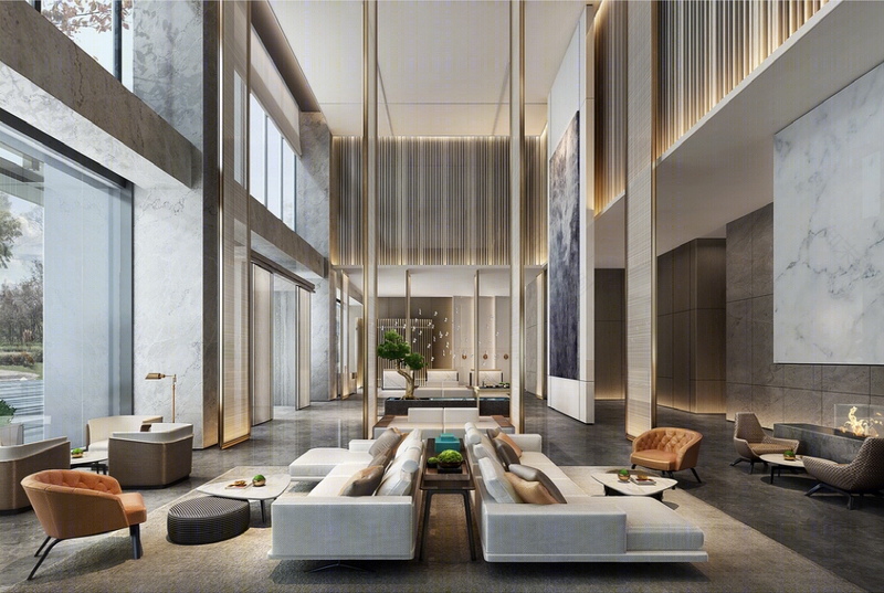 設計理念:以藝術(shù)設計為語言,將功能與空間做到和諧統(tǒng)一,創(chuàng)造出通透、壯闊的挑高大廳,營造出舒適悠閑的氛圍。展現(xiàn)出富有張力的空間美感,突顯高雅品位與人文服務的藝術(shù)設計品味。