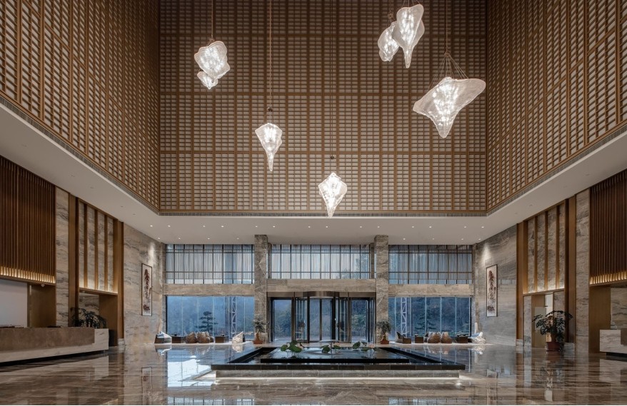 設(shè)計(jì)理念:大別山虛谷溫泉度假區(qū),位于六安茶谷九十里山水畫(huà)廊。敦兮其若樸,曠兮其若谷,大別山虛谷溫泉采用國(guó)際視野、獨(dú)特構(gòu)想,規(guī)劃打造一方青山碧水、宜居宜旅的現(xiàn)代化溫泉運(yùn)動(dòng)休閑度假村落——“一片森林、一汪湖水、一池溫泉、一幅畫(huà)卷?!痹O(shè)計(jì)主題來(lái)源于大別山及革命精神,傳承紅色基因,取此為點(diǎn)綴色調(diào)。山,沉穩(wěn)、挺拔、高聳,秉承自然、古樸之意,東方美學(xué)與自然設(shè)計(jì)理念相結(jié)合。
