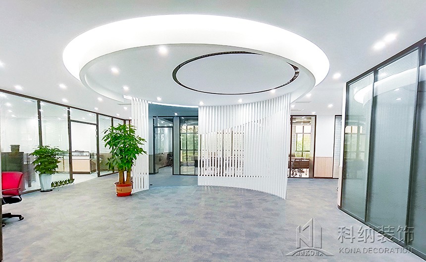 設(shè)計理念:該案例是嶺南學(xué)院清遠(yuǎn)校區(qū)行政辦公樓設(shè)計裝修項目,為了使行政樓更好地作為服務(wù)和辦公場所,設(shè)計師根據(jù)使用需求將一層設(shè)計為多功能綜合服務(wù)大廳;二層為校企合作基地,對外辦公;三層作為行政職能辦公室;四層為校領(lǐng)導(dǎo)、核心職能部門辦公室,對內(nèi)辦公;五層作為會議室和檔案室,用于內(nèi)部使用。這樣的規(guī)劃設(shè)計合理,各區(qū)域既聯(lián)系又互不影響,很好地將校內(nèi)外人員分流,最大程度地利用全部空間。天花圓形造型與線條組合,構(gòu)造出“宇宙星空軌跡”,飛機(jī)造型吊燈寓意學(xué)生以嶺南學(xué)院為起點,學(xué)有所成,飛向?qū)儆谒麄兏髯缘念I(lǐng)域。墻面以護(hù)墻板裝飾,既起到保護(hù)墻體的作用,又與整體風(fēng)格相呼應(yīng)。