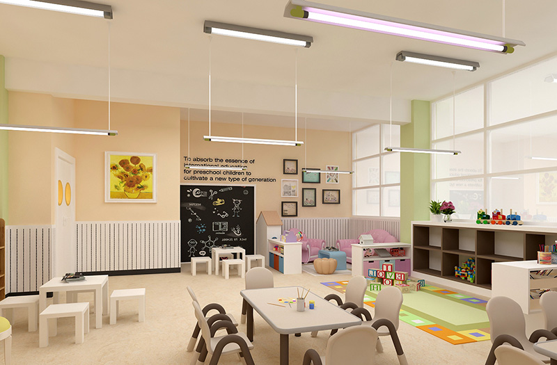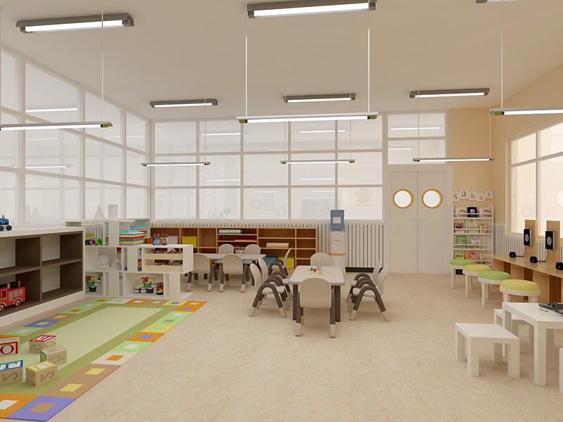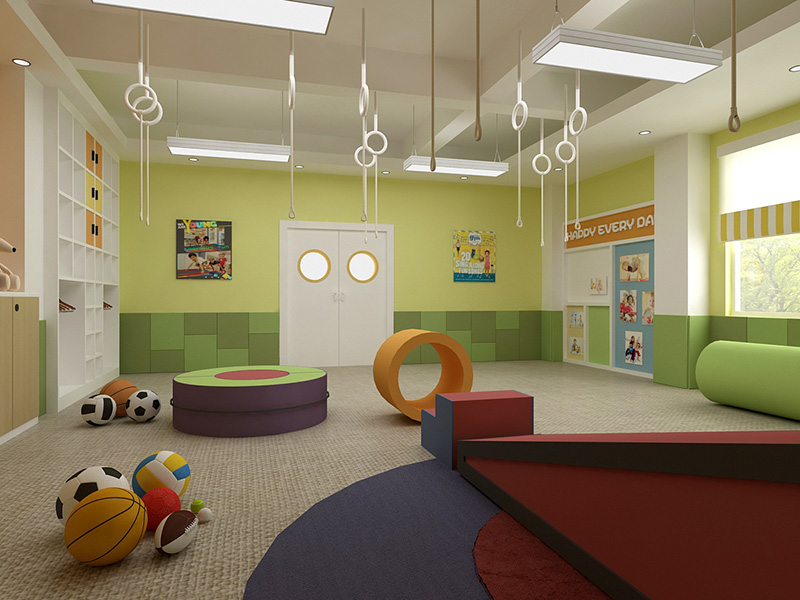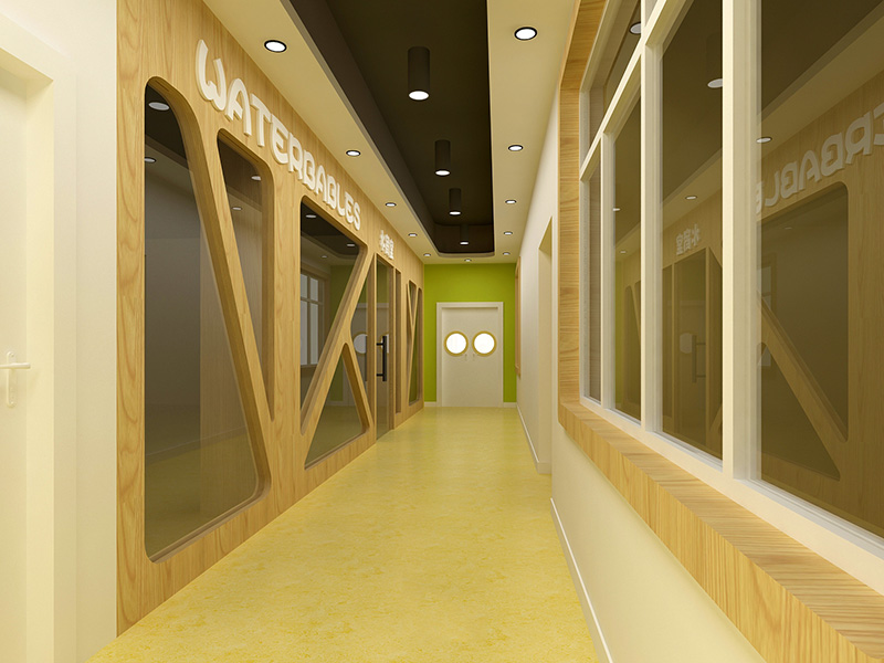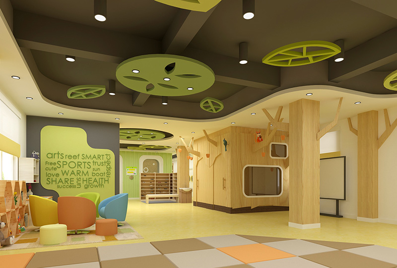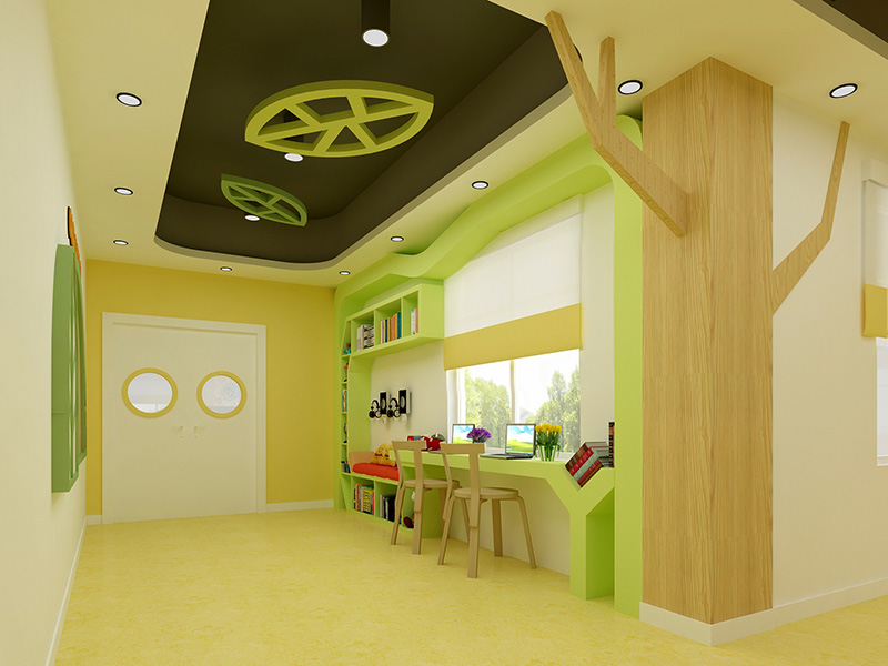 設(shè)計(jì)理念:本幼兒園設(shè)計(jì)案例基于兒童的心理及生理特點(diǎn),設(shè)計(jì)師利用了顏色來(lái)表達(dá)情感。以淺橙色,蘋(píng)果綠作為主題色,分別代表了可愛(ài)柔和的親切感,活力明快的健康成長(zhǎng),清爽積極的探索思考。再加入了原木色的家具及柜體,使得整個(gè)空間在光線的映襯下顯得柔和,自然。大面積使用了原木墻板及原木假梁,這種秩序和結(jié)構(gòu)的關(guān)系對(duì)幼小的孩子充滿(mǎn)了啟發(fā)性。