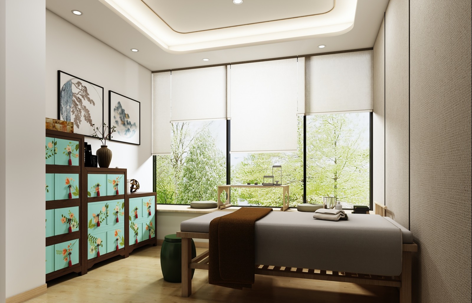 設(shè)計(jì)理念:以原木色和傳統(tǒng)建筑材料營造出溫馨、舒適、親切且獨(dú)特的療愈空間,彰顯中國傳統(tǒng)醫(yī)學(xué)文化意境。